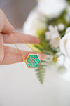 Hexagonal Floral Mandala Necklace with Enamel Detail
